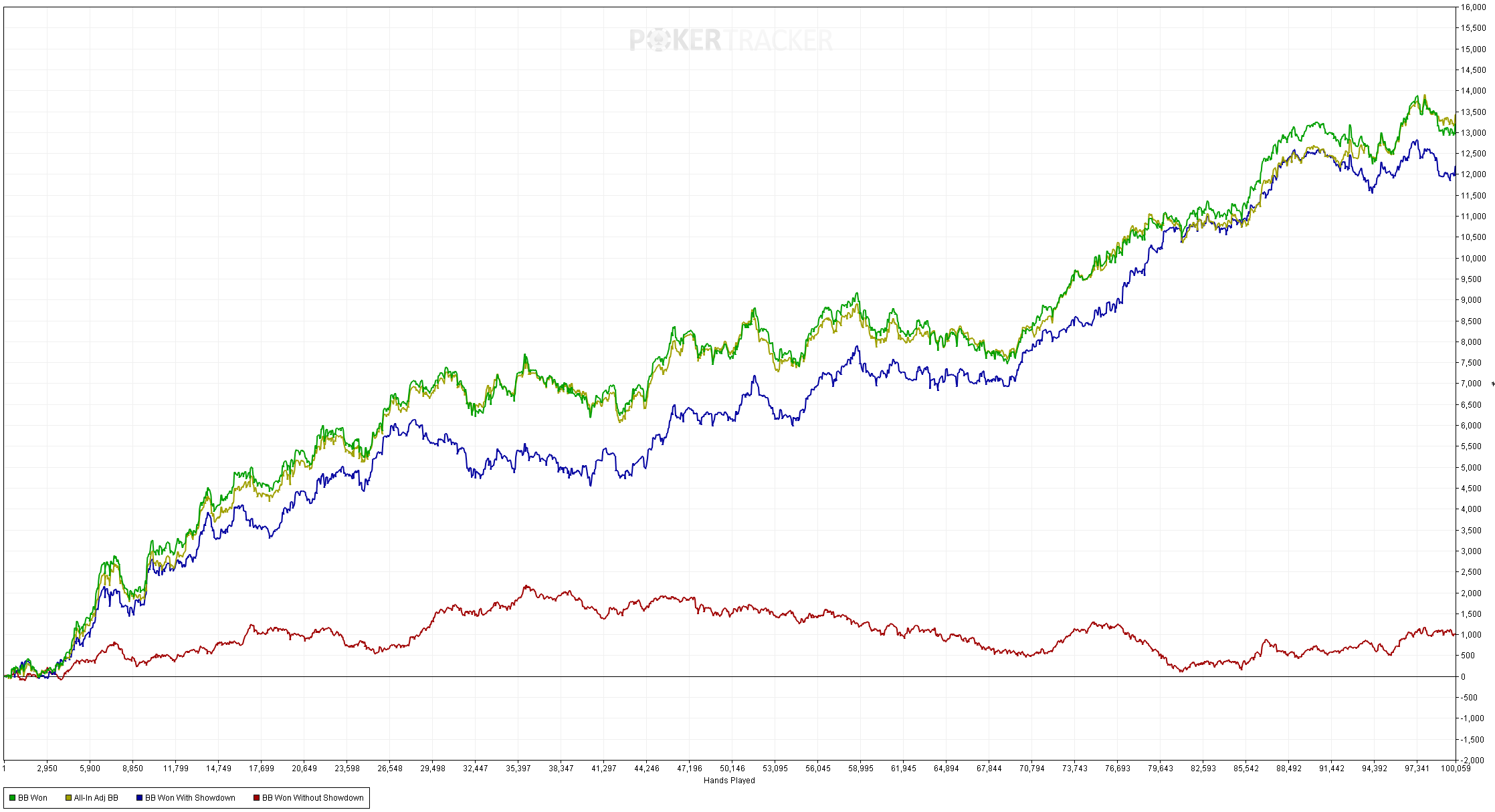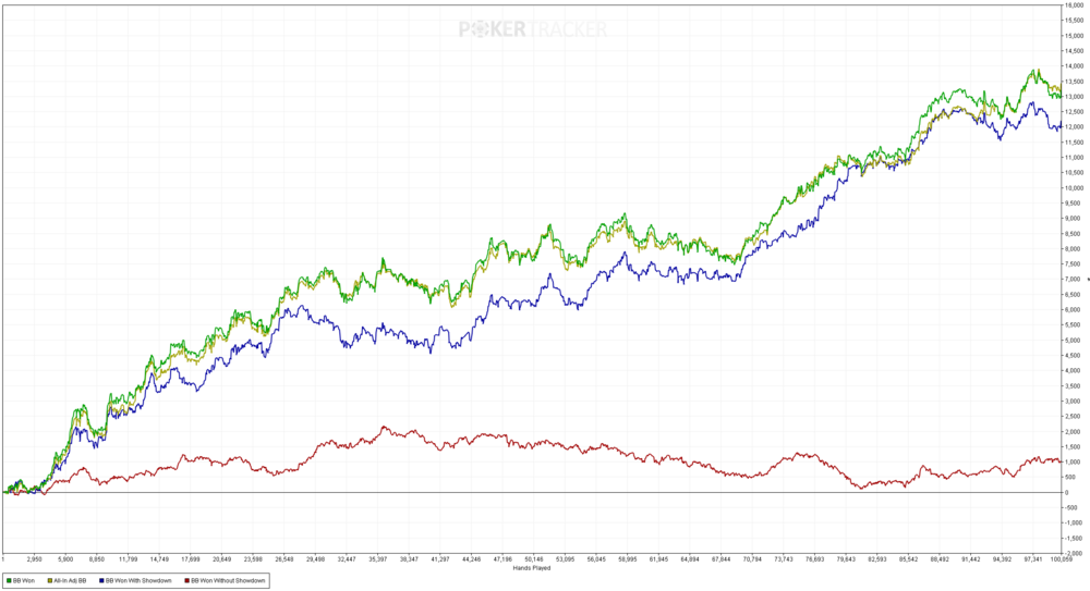 Nej, det var massor av händer mellan mina all in. Statistiken gäller bara när jag gick all in. Spelen mellan gav både plus och minus. Jag är förvånad över att folk är så rädda att möta en all in. Bara en syn på 20 försök är inte vad jag hade trott.
