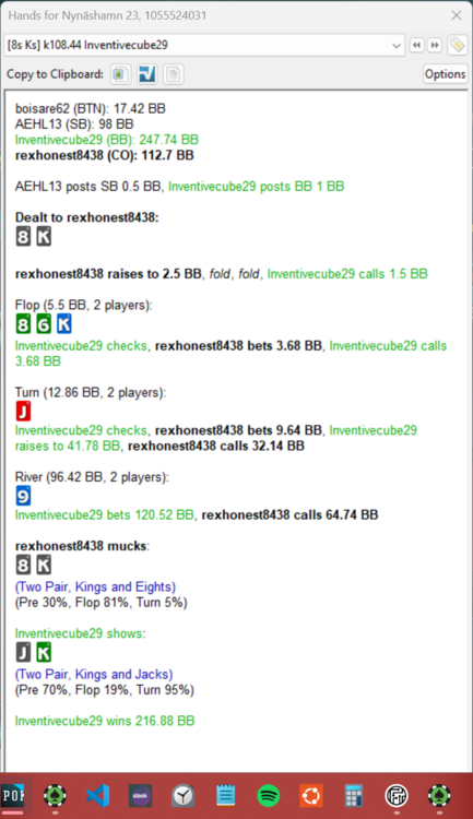 2. Detta är bara en fold på turn antar jag? Asså, det går ju inte att vinna mot de här spelarna. Jag vet inte längre om det är jag som spelar dåligt eller om jag har oflyt ...