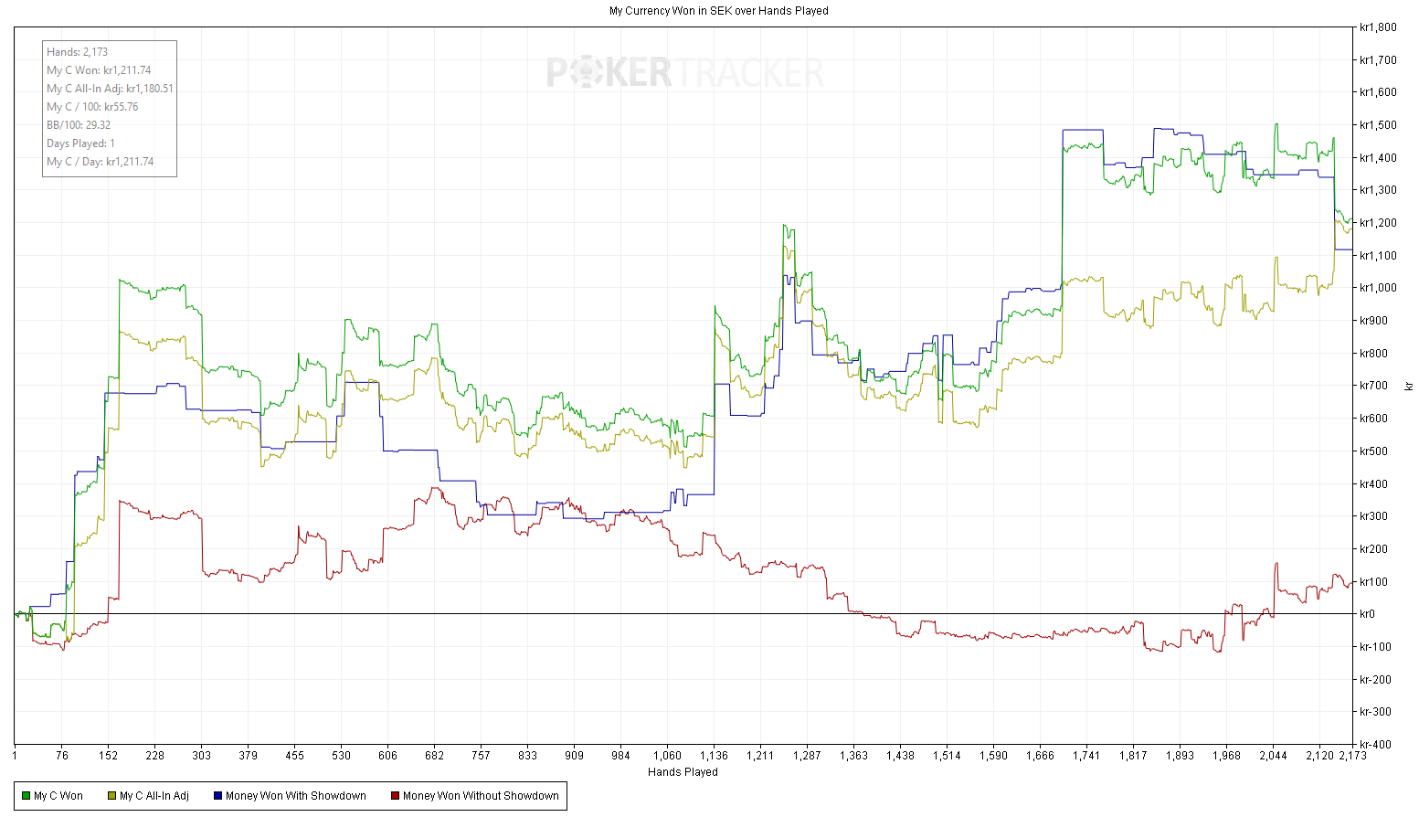 Vi åker vidare! Dagens resultat: Den största potten för dagen är denna (verkar som att insättningsriggen fortfarande sitter i från mars!):