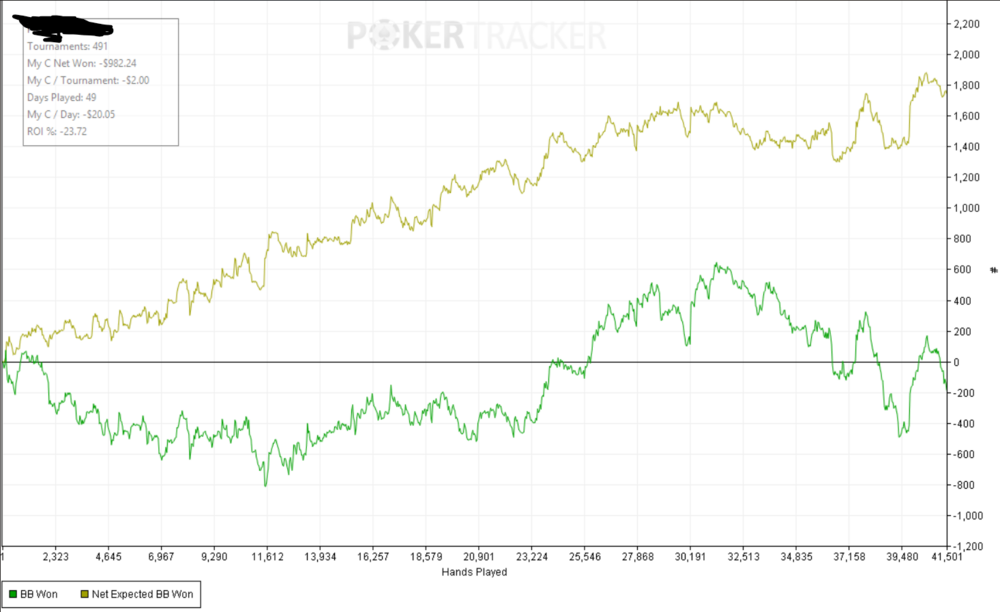 Nästan två månader till har passerat. De innehöll bl.a. SCOOP - en av de två stora turneringsserierna under året på Pokerstars. Nuförtiden verkar det visserligen som alla de större pokersidorna har serier av olika slag igång upp emot hälften av året; pauserna emellan är inte långa. Spelade inte så många av själva SCOOP-turnleringarna dock, eftersom jag vill undvika att ha för stor andel turneringar med stora startfält. Några större framgångar under serien blev det inte den här gången heller. Det som gick bra var satelliterna. Jag lyckades satta in i två $109 och två $55 på bara något tiotal försök. Tyvärr ingen framgång i dem förutom en eller om det var två bountys. En Sunday Million kastade jag bort på ett överspel, ett totalmisslyckat försök att från BB bluffa en vad jag uppfattade som tänkande och aggressiv spelare på CO när det kom många låga kort på brädan, däribland två treor. Ska inte finnas alltför många treor i öppningsrangen på CO heller, men tyvärr för mig hade han öppnat med 53s. Som jag skrivit upplever jag att jag under hösten och vintern fått mer praktisk förståelse för flera viktiga koncept. I år har det börjat synas på BB/100, även om en del kan vara varians. Tyvärr har Pokerstars rånat mig på alltihop med ett kraftigt jävla under EV-spring som bara fortsätter och fortsätter. Det är inte många pass som slutat över EV i år. En stor del av backet ligger på de så viktiga stora allin-händerna med premiumhänder. Allt det här känns väldigt dubbelt. Å ena sidan inser jag att jag fortsatt dras med ett rejält attitydproblem som inte klarar av att acceptera att även för en bättre MTT-spelare än jag slutar de flesta grindpass i mer eller mindre besvikelser. Det är turneringspokerns natur, men något i mig vägrar acceptera det. Å andra sidan känner jag att nu får det väl för fan snart vara nog med negativ varians? Det har egentligen varit tungt sen tidigt i höstas. Vidare resultatanalys har lett till slutsatsen att jag verkligen hade det rejält motigt större delen av hösten med set-ups och att springa in i motspelare toppranger betydligt oftare än förväntat. Det kändes nästan förtrollat ibland. När det till slut efter 30-40 K händer gav med sig började jag istället bli utdragen i parti och minut. Jag har också gjort fler re-entrys under vintern än någonsin tidigare. En del av det kan nog visserligen skrivas på ett mer aggressivt spel som också resulterar i bättre stackar oftare när jag vinner flipparna. Men jag har också haft en närmast magiskt förmåga länge nu att så gott som varje pass åka ut de fem, tio första minuterna i en eller två turrar på händer av typen 4-bet allin för 45 bb (late reg) med KK mot en synare, en 3-betare och en kallsynare bakom denne. Antingen har 3-betaren AA och håller. Eller så synar kallsynaren med 77 och settar flopp. När 3 pass av 4 ser ut så och det 4e slutar som bäst BE klarar i alla fall inte jag att hålla humöret. De föregående 1½ åren bjöd i alla fall regelbundet på en eller rentav 2 hyggligt bra månader. Och den där lite större scoren... den vägrar fortfarande envist att infinna sig. Jag tänker att även med erkännandet att jag sannolikt fortfarande är en förlorande spelare så borde jag på ren normal varians åtminstone ha plockat något eller ett par finalbord för mellan 500 och 1000$. Men inte fan... Så på allra sista tiden har ilskan också kompletterats med en annan känsla: Jag har känt mig ledsen. Ledsen över det massiva och fortgående springet under EV. Ledsen att just inget resultatmässigt kommit ut än av de förbättringar som har skett i mitt spel. Det känns så orättvist. Samtidigt vet jag att det är meningslöst. Lika meningslöst som att bli arg på Jokerstars tombola-RNG, eller ens tänka på den som en sån. Tror jag på allvar att den är skev ska jag inte fortsätta spela. Kan jag inte hålla känslorna rimligt i styr ska jag inte fortsätta spela heller för både mitt välbefinnande och för att jag inte lär kunna prestera mitt A-game, oavsett hur långt det nu kan räcka om jag kan hamna lite mer på solsidan ibland åtminstone. Pengarna jag fortsätter att torska betyder dock mindre. Att lägga knappa 7% av sin nettoinkomst på poker (inräknat kostnaden för GTO-wizard och ett abonnemang på en strategi-podd) när man inte längre behöver försörja ungar och inte har några stora dyra fasta utgifter är egentligen inget att snacka om. Visst önskar jag att jag ska kunna bygga en rulle och fortsätta spela på den utan att reloada nästan varje månad. Att vinna och casha ut (som jag ändå kunde göra 2009-2011) betyder dock mindre. Det är den intellektuella utmaningen och spänningen som är grejen. Men någonstans går gränsen och blir det inte lite mer variansmässig uppsida snart är det inte omöjligt att jag lägger ner.