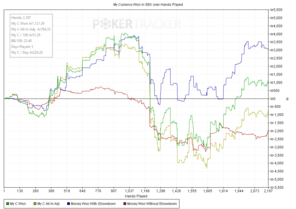Kämpa på kompis! Jag har tappat all form av sug till pokern senaste månaderna Men ska försöka få in lite volym i Maj kanske. Gott att du pluggar och söker jobb, hoppas på det bästa. Ta det lugnt med det vita!
