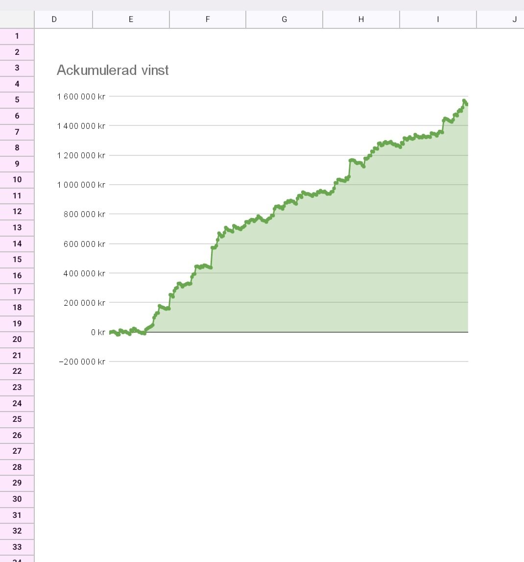 Ett tag sen senast.. Mycket har hänt sen sist. Största skillnaden är att vi har en halvåring nu som tar upp mesta av tiden här. Förra året blev inget superspännande år pokermässigt, mindre volym än tidigare år och utveckling i sidled. Hade perioder då det blev noll spel på några veckor/månad, då blir jag snabbt ringrostig och tappar det. Sluta året dryga 200k+. Iår har jag satt igång och börja plugga så smått igen och fått in en fin rutin med 2 dagars spel i veckan, söndagar och en random vardag. Året har börjat bra med 230k+. Jag är en väldigt ostrukturerad person allmänt och har svårt att styra upp saker och ting och inte minst hur jag ska lägga upp plugg. Markerar lite random händer och kollar videos men med noll struktur. Hade varit fint med en pokerlärare som säger vecka 16 gör vi detta 😀 Sen tycker jag med det är lite klurigt när man exempelvis kollar i en solver hur mycket man ska defenda mot aggression när pop är så mycket tightare. Jag adjustar ju bara på typ magkänsla och erfarenheter vilket väl har funkat bra hittils men ah. Kanske det som är poker 2026, kolla solver sen gör man sin egen tolkning vad som funkar in game? Mycket mummel här men jajaja.. Företaget tuggar på stadigt men börjar känna mig mer och mer klar med det kapitlet. 33 års kris och för man blivit farsa kanske? Känner mer och mer motivationen kanske inte är vad det borde vara. Företaget har potential och tror verkligen framtiden kan vara riktigt ljus med mer engagemang. Det är konstigt egentligen att det är nu man känner sig omotiverad när det egentligen nu det går som bäst. Men kombinationen kunna spela ett par dagar i veckan ihop med företaget är fint rent ekonomiskt för mig. Livet är dock mer än pengar (inte för att jag badar i pengar😂) men har börjat fundera på andra jobb som man skulle kunna kombinera med pokern. För jag tycker fortfarande poker är kul och ser mig inte sluta spela seriöst på år framåt. Ta ett heltidjobb som suger ut energin för att spela blankt nej. Poker på heltid tror jag inte hade funkat praktiskt just nu även om det blir så i en eventuell övergångsfas. Nånting Deltid+poker känns lockande. Tjejen fixa ihop en trevlig graf i kalkylarket från 2023 och framåt då jag börja spela på sidor utanför sharscopen.
