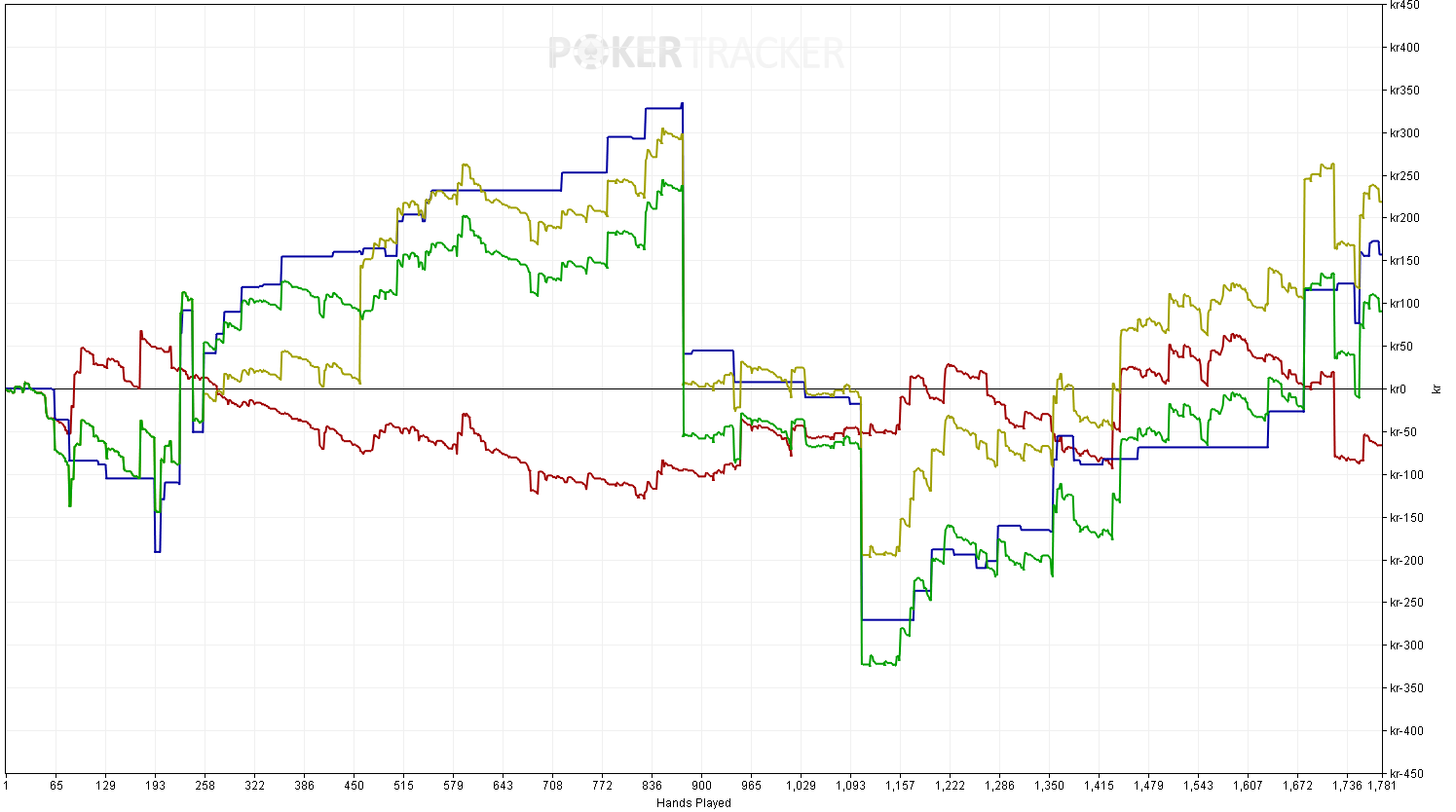 24. GL! Först och främst, spela på SVS borden hellre än den globala euro-poolen. Sen blir man ju glad när man ser att du verkar ha aggression som default, många är allens för passiva i början. Med det sagt har du har mkt framför dig om du vill bli en stabilt plussande spelare. Skulle rekommendera att du först och främst skaffar dig ett program där du kan analysera ditt spel. Holdem manager eller Pokertracker tex (hand2note är bäst men kostar rätt mkt för en nybörjare). Löser du det kan du börja posta din statistik här så kan vi kolla på ditt spel den vägen.