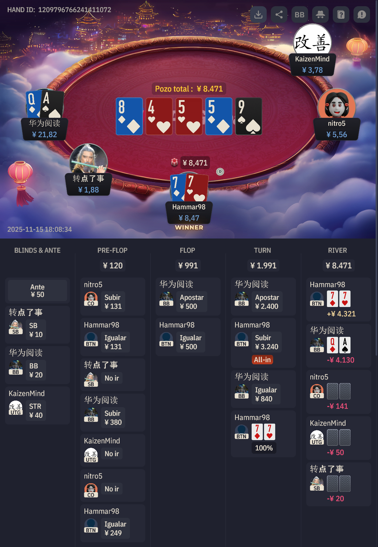 12. Rättelse, 15% vpip och -200% 3bet 🤣 har på allvar aldrig sett annat än AA 3betat, flatar KK pure oavsett action haha