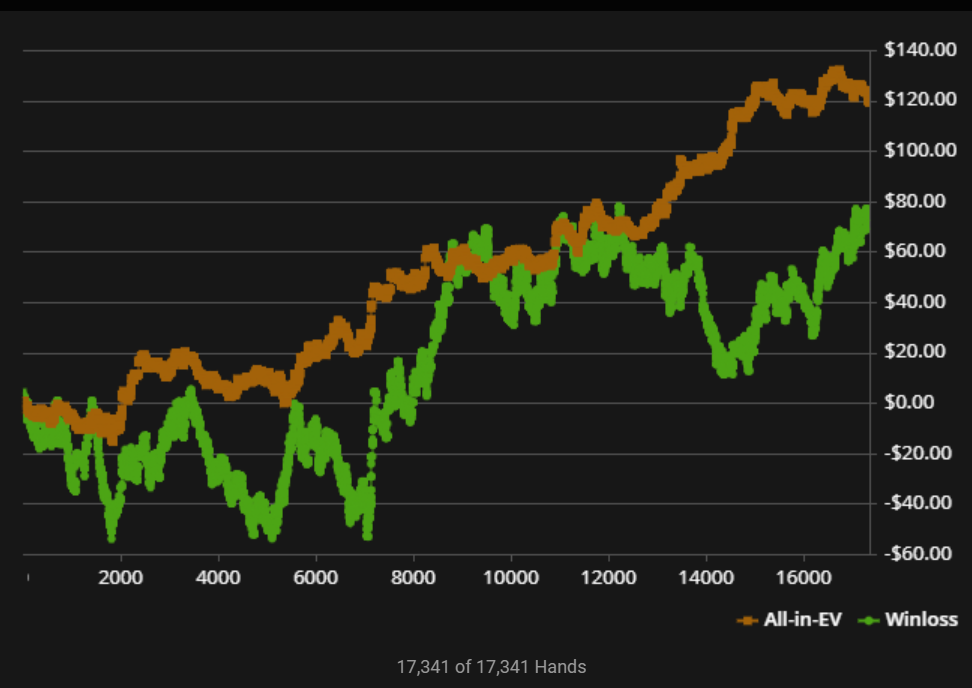 Hahaha poker alltså... Tror jag sprungit under EV tio raka pass nu eller nåt sånt. I kombination med inspring i motståndarnas topp av rangen långt över förväntad frekvens. Och så lite sköna set-ups som grädde på moset. Nu var det nästan komiskt. Satt upp ett par bord bara medan jag tittar på en stream. I omedelbar följd får jag först in QQ mot JJ för ca 35bb eff och topplats i SNG:n. Och förlorar mot runner runner-flush. Sen i $7,50 höjer jag i Btn med KK en limpare till 5bb med effektiva stackar på 90bb. SB 3-betar mig till 14. Jag bestämmer mig med position att kallsyna. På 8-hög bräda donkar sen fisken in hela sin täckande stack (typ 130bb). Jag synar naturligtvis. Han har AQo. Och rivrar ett ess. Två bust alltså där jag mer än 60% av gångerna vinner bägge. Lovely. Men inte förvånande som jag springer nu. Sen tappade jag av bara farten en pott med AQs mot en fisk som limpsynade från mellanpos med Q9o och drog ut mitt toppar på rivern med en andra nia. Årskrönika kommer sen nån gång när jag slagit sönder lite porslin här hemma eller nåt 🤣