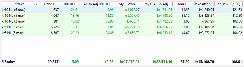 Du läser rätt. Jag gillar inte förändringar. Kanske att jag går upp när jag har typ 4k i rulle, har väl 2700-2900 nu. En till dag på /0,5 i alla fall. Nästa helg ska jag fan ändå våga! Det var ej så stor skillnad när jag spelade det i somras.