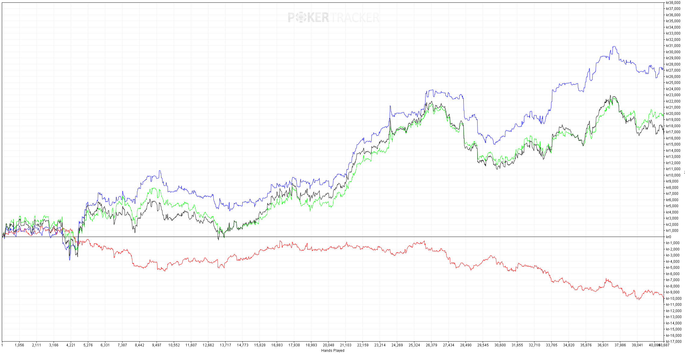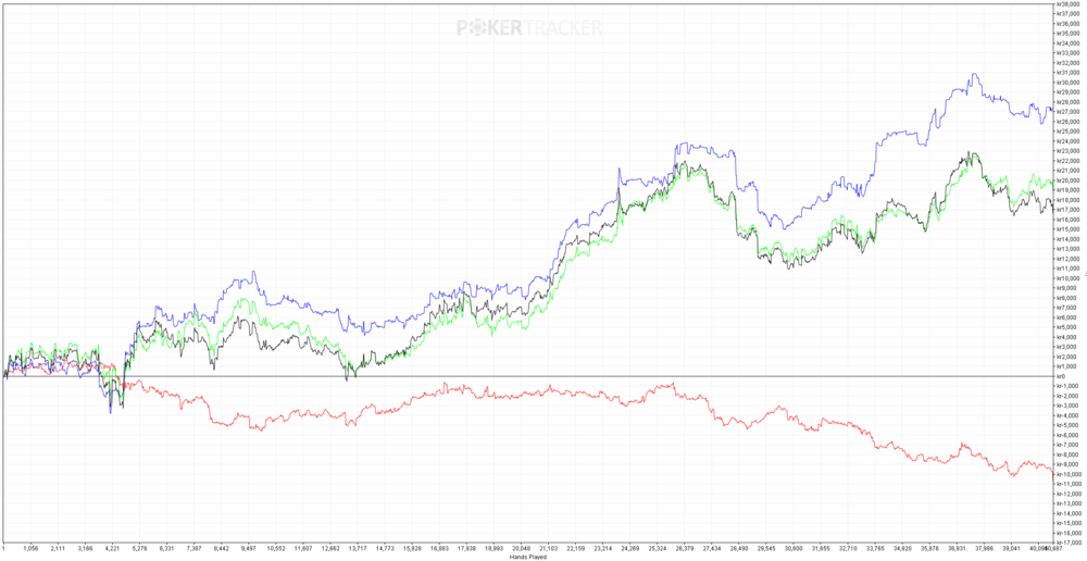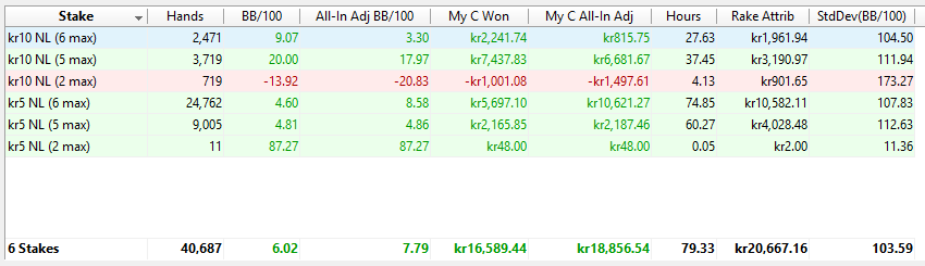 Så pokern för december är slut för mig, och månadens resultat är inne Så man kan säga att jag misslyckades med alla mina mål. Spelade för många händer, för låg win-rate mot vad jag kan. Vägde även in på 78.1 kg nu på morgonen så har en liten bit kvar till >80 som är målet innan deffen börjar. Spelmässigt spenderade två omgångar med att vara hemma sjuk och detta ledde till frestelsen att spela i games som var sådär eftersom "jag har ju ändå inget annat för mig". Så den stora läxan av december är att återigen fokusera på kvalitet > kvantitet. Min bedömning är att jag inte spelat markant sämre än tidigare månader, utan att detta kommer ner mycket till att spela tider då jag är mer skarp i förhållande till mina motståndare. Hade även turen att spela en live MTT på klubb och klonka den för ~25k vilket gör månaden som helhet klart bättre. Är man inte bra får man ha tur helt enkelt. Kan även meddela att pokern lever och frodas, kvalitén på snittspelare har inte ändrats markat live senaste 10-15 åren. I korthet ändras inget med mina mål för januari. Det kommer krävas lite mer fyrkantighet och en skopa diciplin, så nu kör vi! Mål januari * 20k händer på >15EV BB/100 * Väga in på 80 kg Kommer en ny blog kommande dagar där jag summerar året 2025. God fortsättning på er alla!
