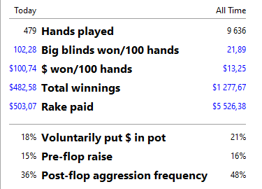isac lundkvist Postad 10 timmar sedan Författare Rapport Postad 10 timmar sedan (redigerade) Jag börjar med lite resultat för veckan som gått. Jag har spelat 50NL och 100NL och eldat 500kr i ett par MTTs. Jag ska sluta med MTTs tills rullen har mer förlåtelse för mitt värdelösa tålamod i turneringar. Kom 400 händer kort om målet på 10K Men det är som det är. Har spelat när jag haft bra energi och varit fokuserad och inte bara tomgrindat för att få ihop volym och det upplever jag vara en av fördelarna med SvS kontra typ GG eller Coin då jag ofta på dessa sidor bara sitter och grindar för leaderboard och RB istället för att fokusera. Jag är nöjd med 21BB/100 över nästan 10K händer. Känns som jag spelat helt ok. Om jag skulle kritisera mitt spel så är jag scared money ibland. Hamnar i situationer där jag kanske borde trycka mer marginellt men jag har inte kulorna för det helt enkelt så det är något att jobba på. Öka min riverbetfrekvens markant samt checkraise och raise på alla gator. Upplever att poolen spelar väldigt passivt för det mesta. 3betbluffar är sällsynt och 4betranges är AA KK AK. Finns såklart undantag och mycket fisk på dessa stakes. Rullen står på 4282kr Som ni ser på grafen är min non showdown i källaren så behöver få upp den. Men samanfattningsvis så tycker jag veckan känns bra med 21bb/100 och sprungit under Ev ändå. Redigerad 10 timmar sedan av isac lundkvist 2 Citera